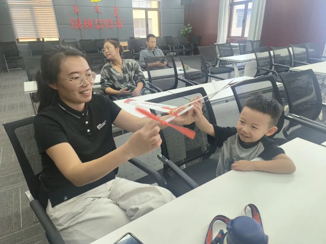 “我知道!我知道!”来自锡林郭勒盟模型运动协会的科普老师以一连串有趣的问题点燃了孩子们对于航空探索的热情。
