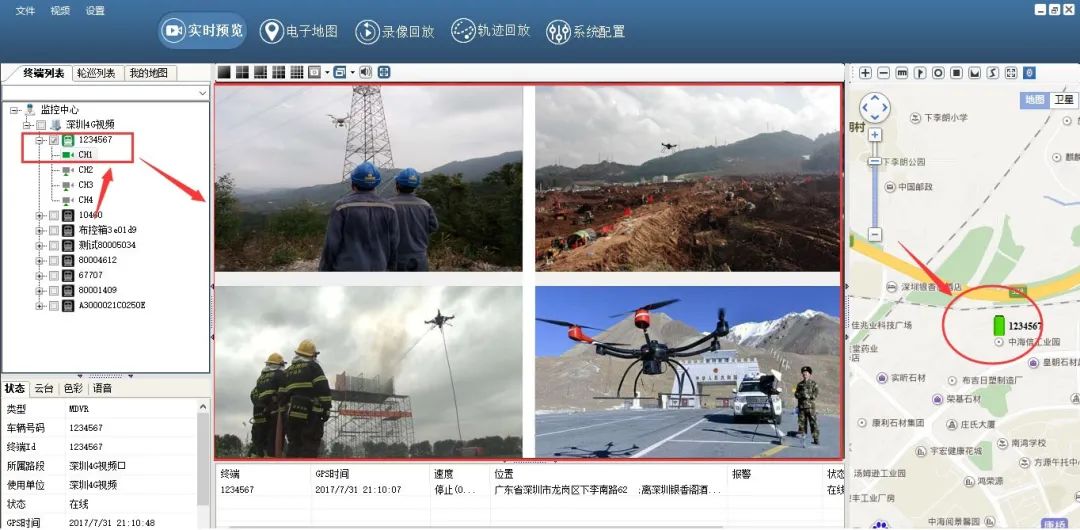 6、执法行业的现场执法直播:公安、法院、交警、卫生、环保、城管、海防、武警、保险、消防等执法现场或在灾害事故的应急救援中,可多维度、多角度采集事故现场视音频信息,4G传输到无人机地面站和后方指挥中心,并持续跟踪事态发展,为指挥人员提供判断和决策依据。
