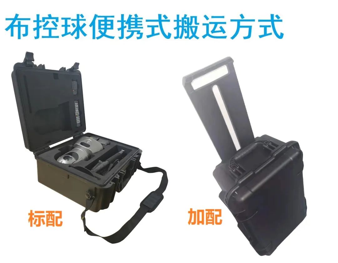 便携式:设备磁力复合吸盘设计,专用防护箱装备采用三脚支架的方式安装,或用布控球自带的磁铁,可吸附式安装,随时搭建使用方便拆卸,临时布控更方便,也可车顶和支架部署安装。