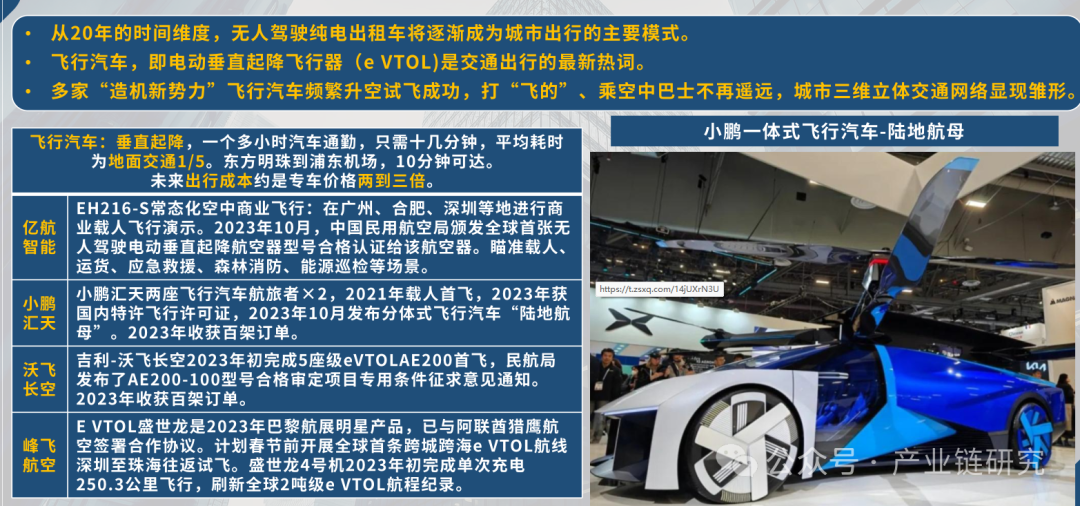 4.以20 年的时间维度,无人驾驶纯电出租车将逐渐成为城市中等距离高端出行的主要模式,再配上5G V2X 对交通基础设施的改造,逼近零拥堵、零事故和零排放。