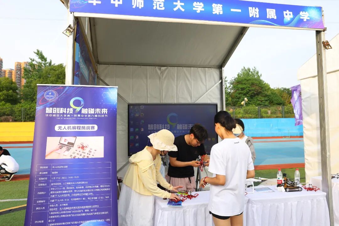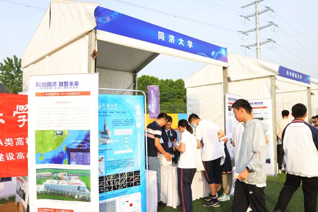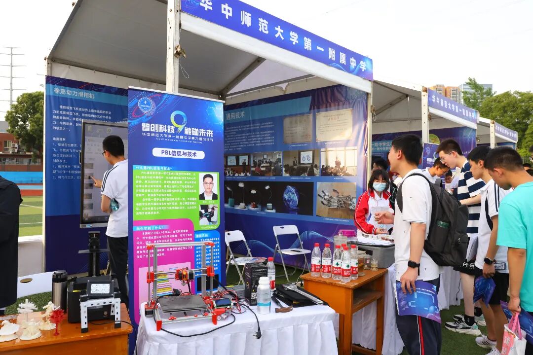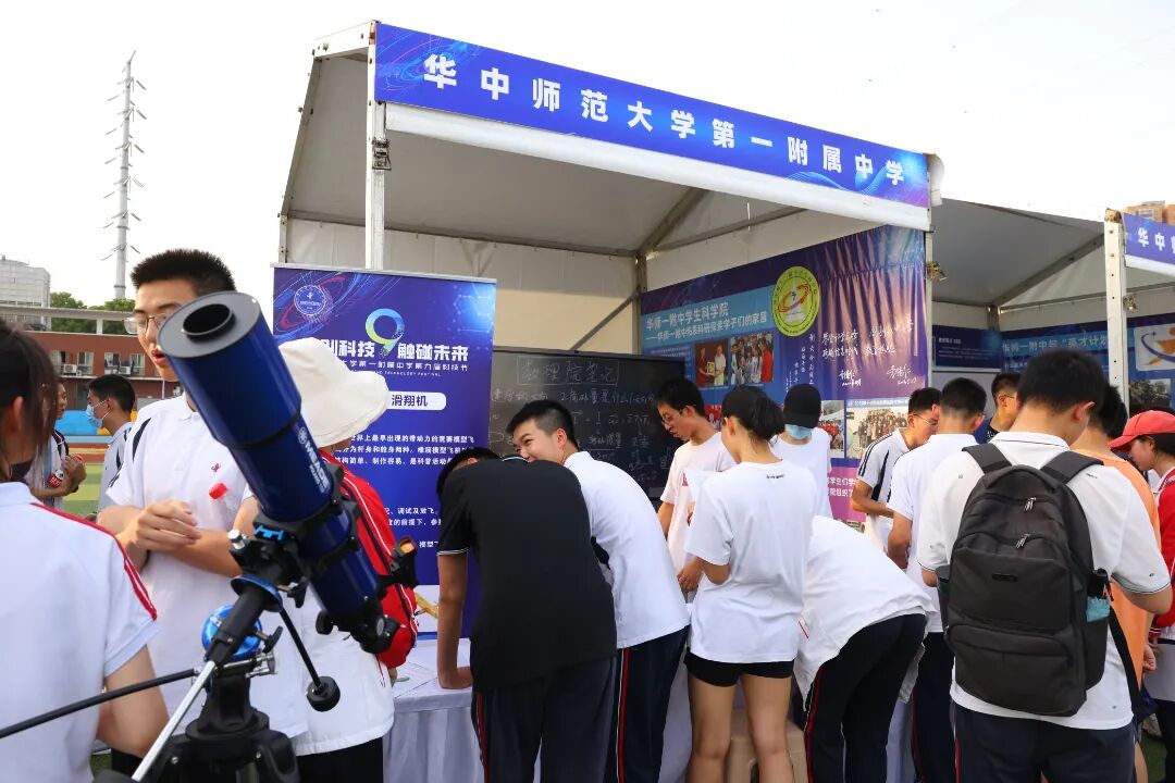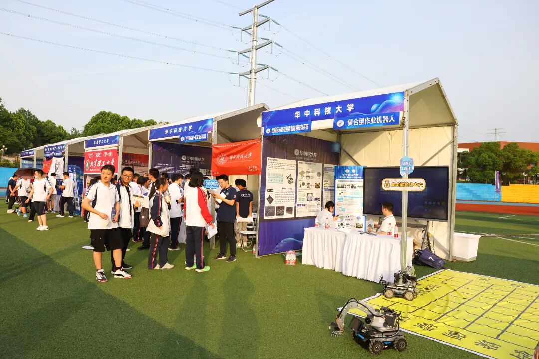 活动共布置了33个室外展台,国内12所双一流高校(上海交通大学、同济大学、中国科学技术大学、北京航空航天大学、北京理工大学、天津大学、西北工业大学、华中科技大学、武汉大学、武汉理工大学、中国地质大学(武汉)、华中师范大学)展示了前沿科技成果,华师一附中师生们展示了学科课程与科技课程中的科技创新成果,为同学们搭建了一个接触未来的科技平台。