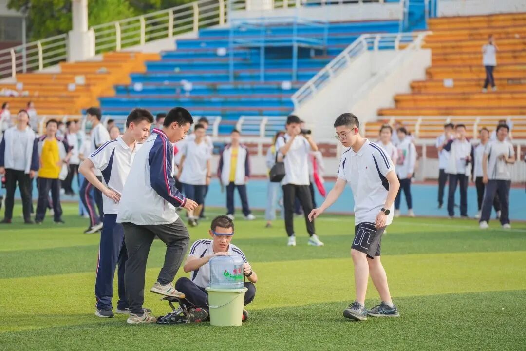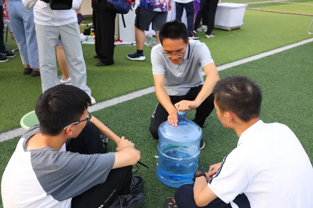 首次水火箭发射成功后,他们找到了学校物理教研组李峰老师进行指导。在李老师的指导下,他们选择桶装水桶制作更大的水火箭。“我们尝试了十几个桶后才成功,虽然网上可以购买水火箭相关材料,但是我们就想用身边的物品,大家一致觉得这样能得到更多锻炼。”高一27班马宁说。