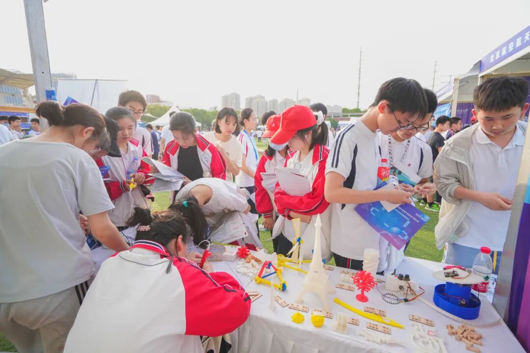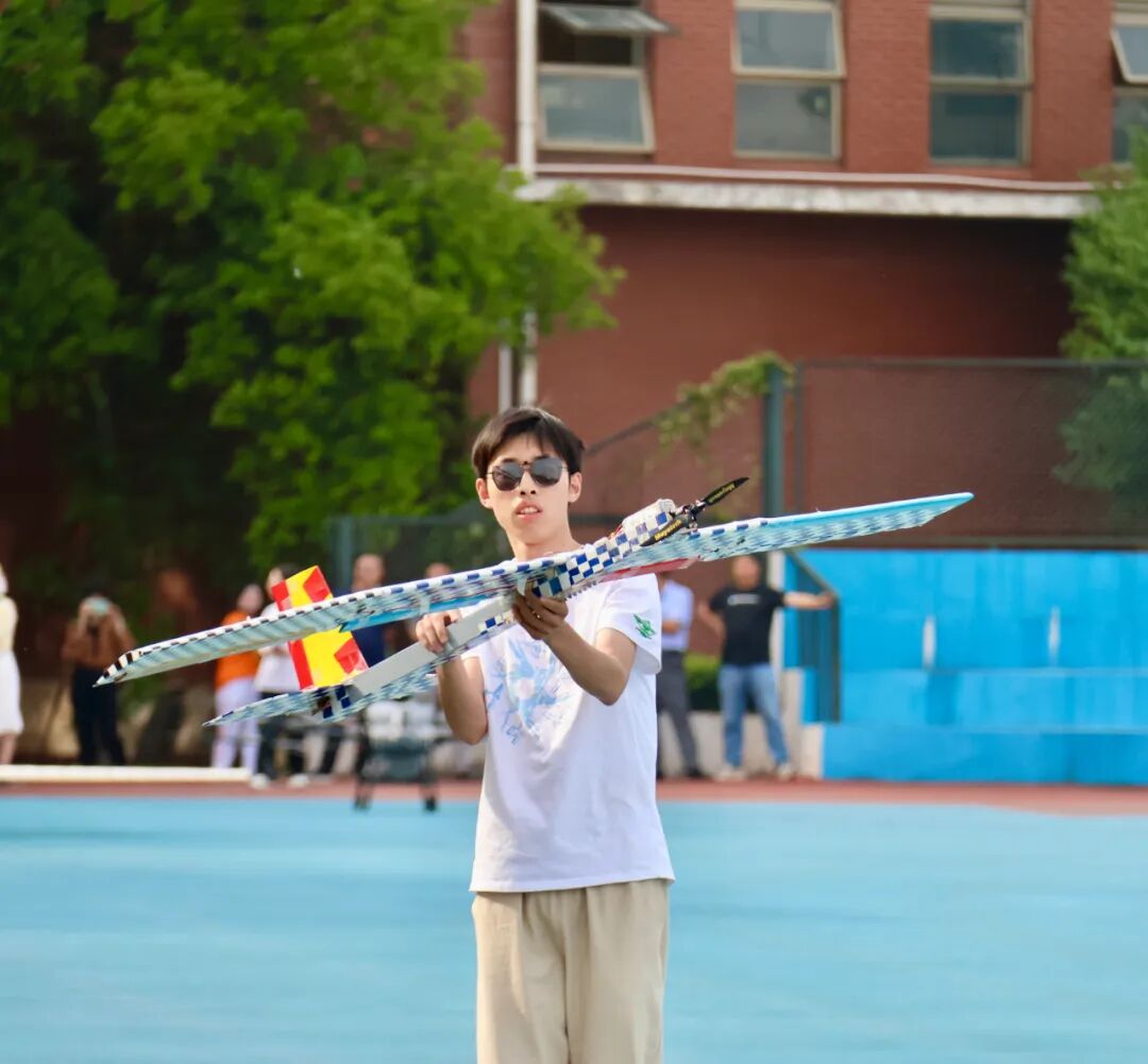 北京理工大学和西北工业大学都带来了自主研发制作的航模。北京理工带来了创新载重飞行表演。西北工业大学自重仅一公斤的限距载重空投飞机带来的表演也获得了无数掌声。该飞机两翼长为两米多,机身底部还搭载一个装满水的瓶子,飞机最高可搭载11公斤的物品,升空后该飞机快速精准地将塑料瓶空投至指定位置。“我们特意从西安带来这些航模,就是想让高中生们近距离感受航空航天的魅力,激发他们对科学的兴趣。”西北工业大学航模队队员徐轲说。