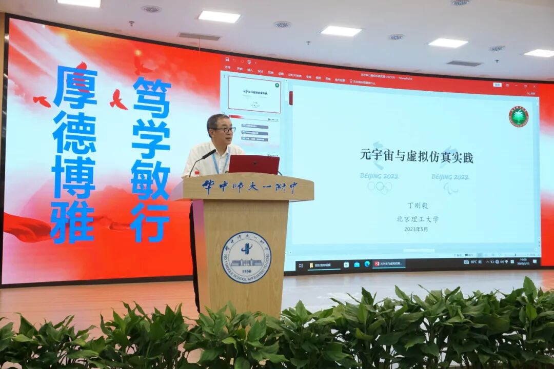 在学校一号报告厅,北京理工大学丁刚毅教授为同学们带来了《元宇宙与虚拟仿真实践》科技报告,现场座无虚席,报告之后同学们踊跃提问。