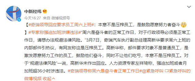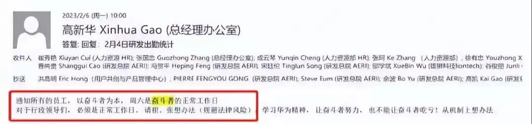 邮件中称:“以奋斗者为本,周六是奋斗者的正常工作日。对于行政领导们,必须是正常工作日,请想办法(规避法律风险);学习华为精神,让奋斗者努力,也不能让奋斗者吃亏!从机制上想办法。” 在高新华邮件发出之前,奇瑞汽车营销公司总经理李学用就已喊出了“让内卷来得更猛烈些吧”。由此可见,奇瑞的加班文化和内卷已经习以为常,奇瑞的成功带着卷基因。