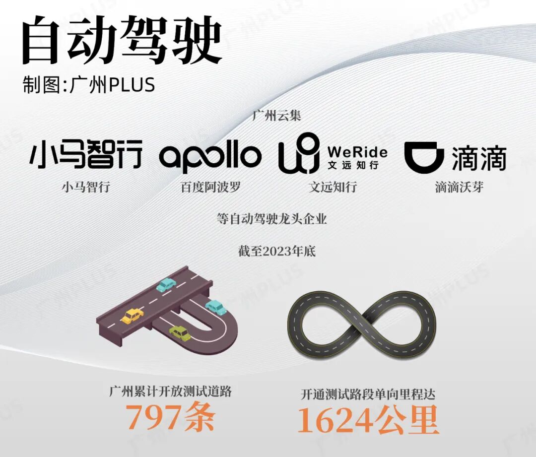 目前,广州已聚集小马智行、文远知行等国内自动驾驶头部企业,广汽集团、小鹏汽车等车企也积极参与,测试及应用示范运营主体达到15家。