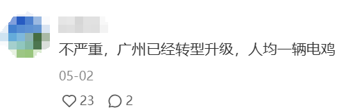 更是有网友辣评:“广州汽车产业早就转型升级啦,现在人均一台电鸡!”