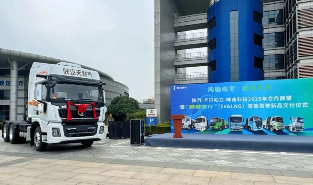 11月13日,陕汽-卡尔动力-眸迪科技三方签署战略合作协议,并现场批量交付新车基于陕重汽5000平台的纯电动及天然气L4级智能驾驶重卡。