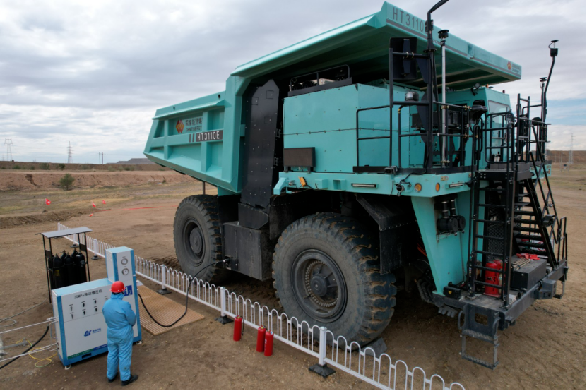 矿卡自身重达90吨,能够承载110吨的货物。它采用了先进的线控底盘一体化设计,并配备了360度全景视觉系统和无人驾驶技术,实现了新能源卡车与云计算、人工智能的深度融合,填补了露天煤炭行业新能源无人矿卡应用领域的空白。