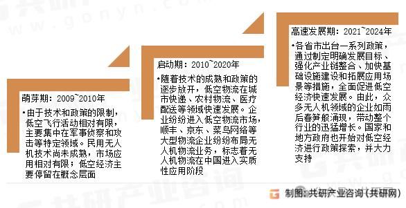 中国低空经济物流行业的发展可以分为三个历史时期:萌芽期(2010年以前)、启动期(2010-2020年)、高速发展期(2021-至今)。目前,国家已出台一系列利好政策推动中国低空经济物流行业的发展、提供政策保障,头部物流外卖企业已开始商业化运营。二、中国低空经济物流行业发展历程