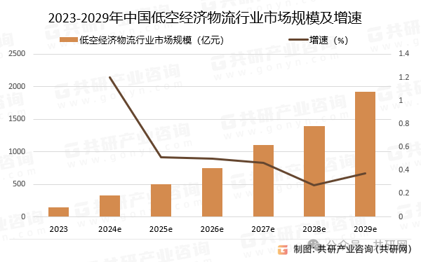 2024年低空经济首次被写入政府工作报告,低空经济作为战略性新兴产业的地位得到国家层面的认可和重视,同时《无人驾驶航空器飞行管理暂行条例》出台,为无人机产业提供了规范化发展的法律基础,支撑无人机产业的强劲增长,并把握低空经济发展机遇。预计2024-2029年,我国低空经济物流行业市场规模由330.47亿元增长至1920.3亿元,期间年复合增长率42.18%。