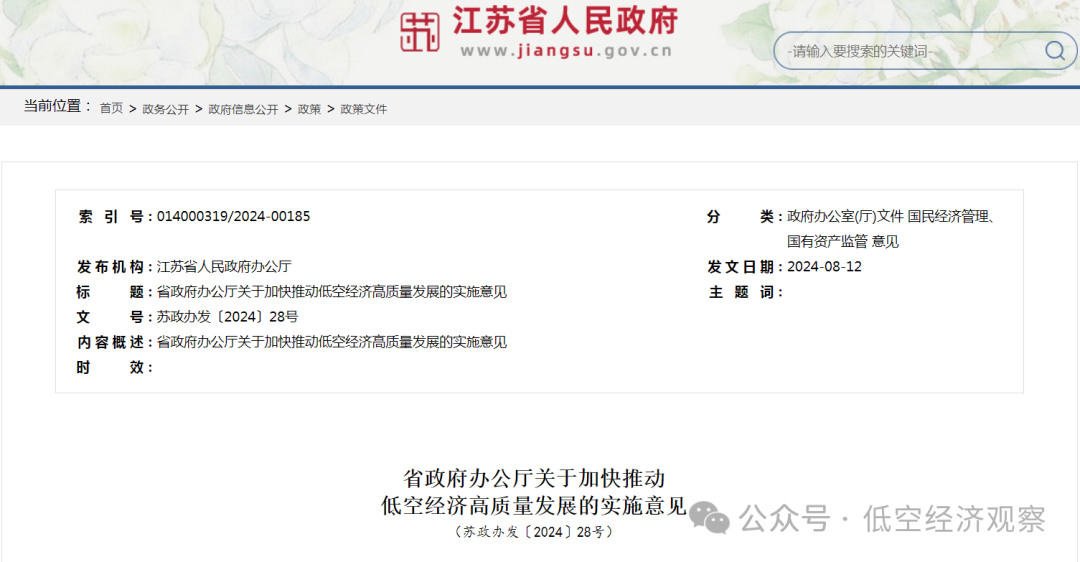 信息来源:江苏省政府网站、中国江苏网,「低空经济观察」编辑整理。欢迎投稿、合作推广,请点击下方联系我们。