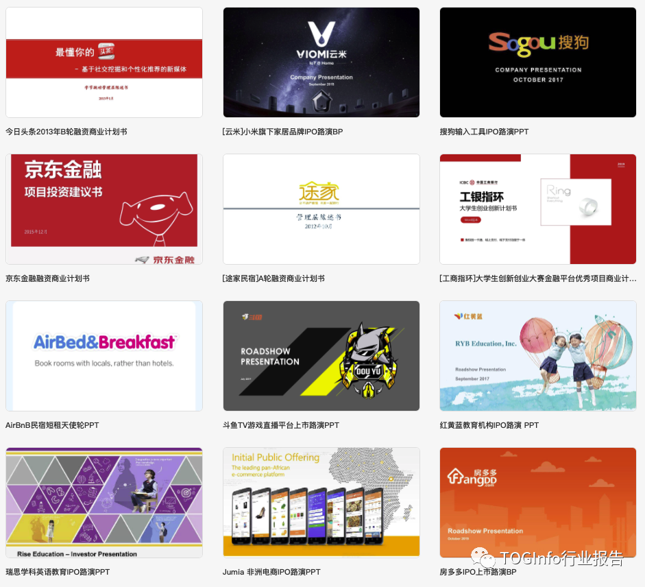商业计划书是公司非公开文件,只能找到那些公开发表的,所以数量不如研报,但是质量都属于很好的那些。